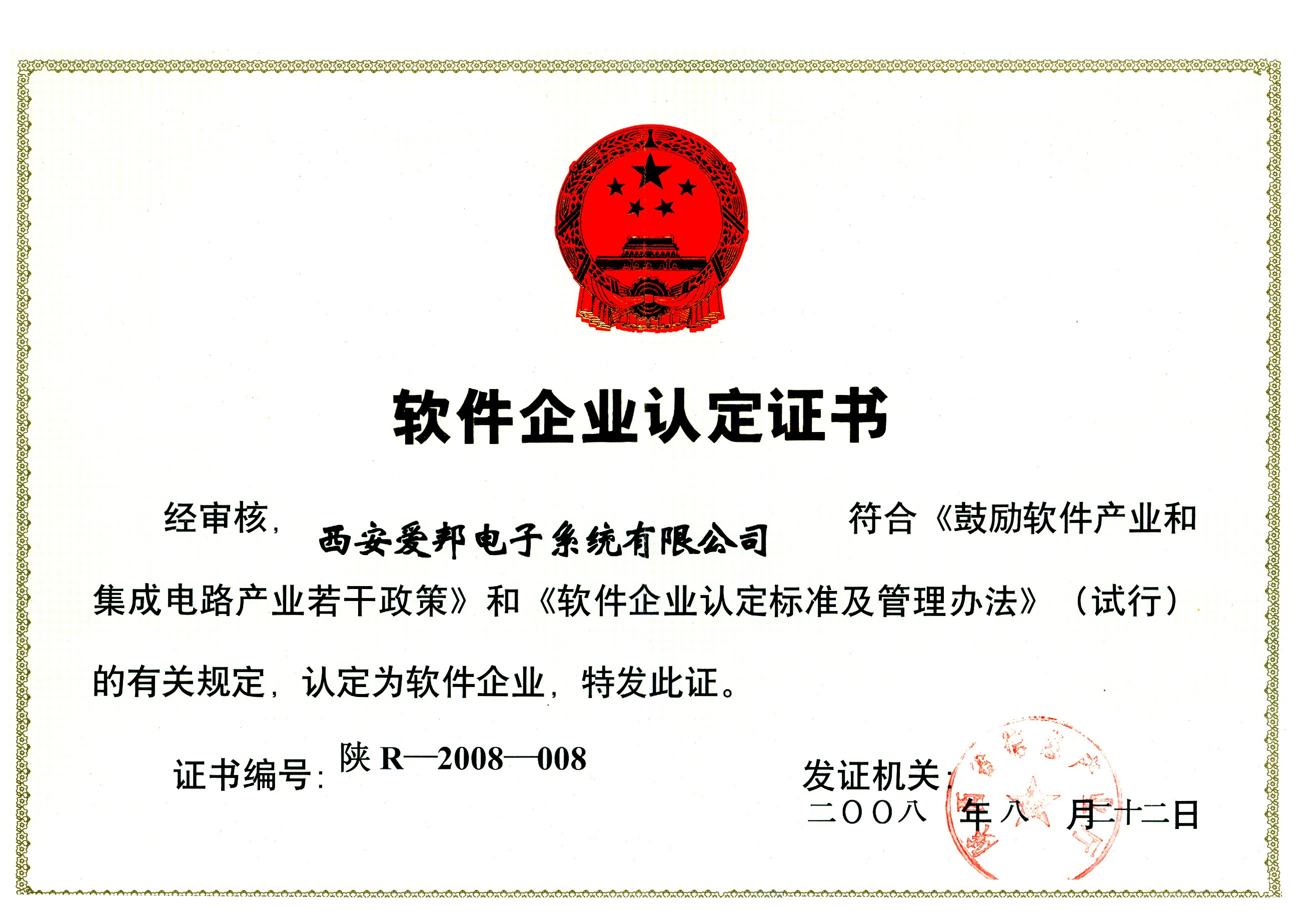 愛邦公司是陜西省認定的第一批國家高新技術企業(yè)、第一批省級優(yōu)秀軟件企業(yè),是西安高新區(qū)“優(yōu)秀瞪羚企業(yè)”和“知識產權優(yōu)勢企業(yè)”,企業(yè)先后獲得西安市政府“中小企業(yè)創(chuàng)新工程”、陜西省政府“13115重大科技專項”、國家科技部“中小企業(yè)創(chuàng)新基金”支持,被國家知識產權局評為“專利工作先進單位”,企業(yè)商標連續(xù)三次榮膺“陜西省著名商標”稱號。